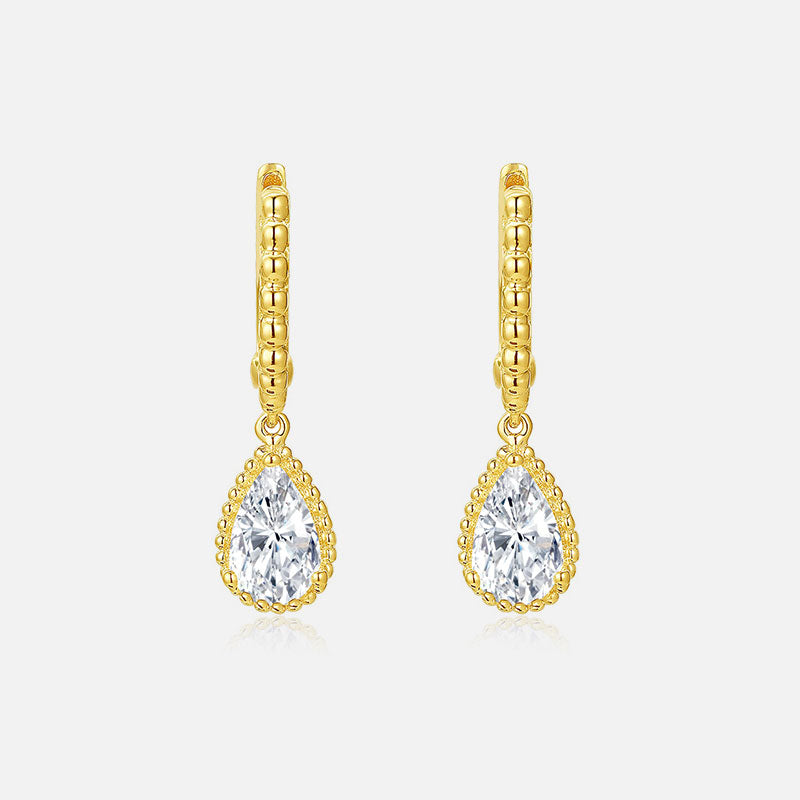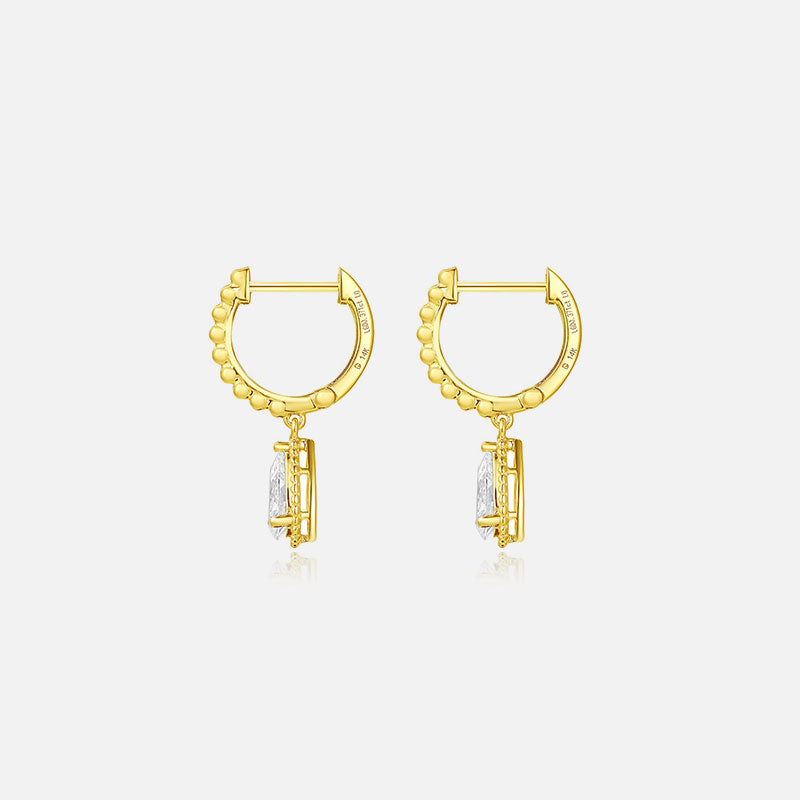 Pendientes colgantes personalizados de oro de 18 quilates con diamante cultivado en laboratorio en forma de pera (2,23 CTW - DE/VS-VVS)