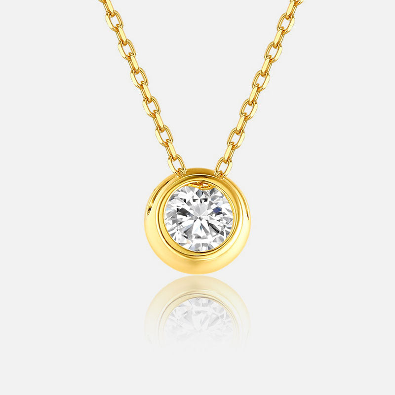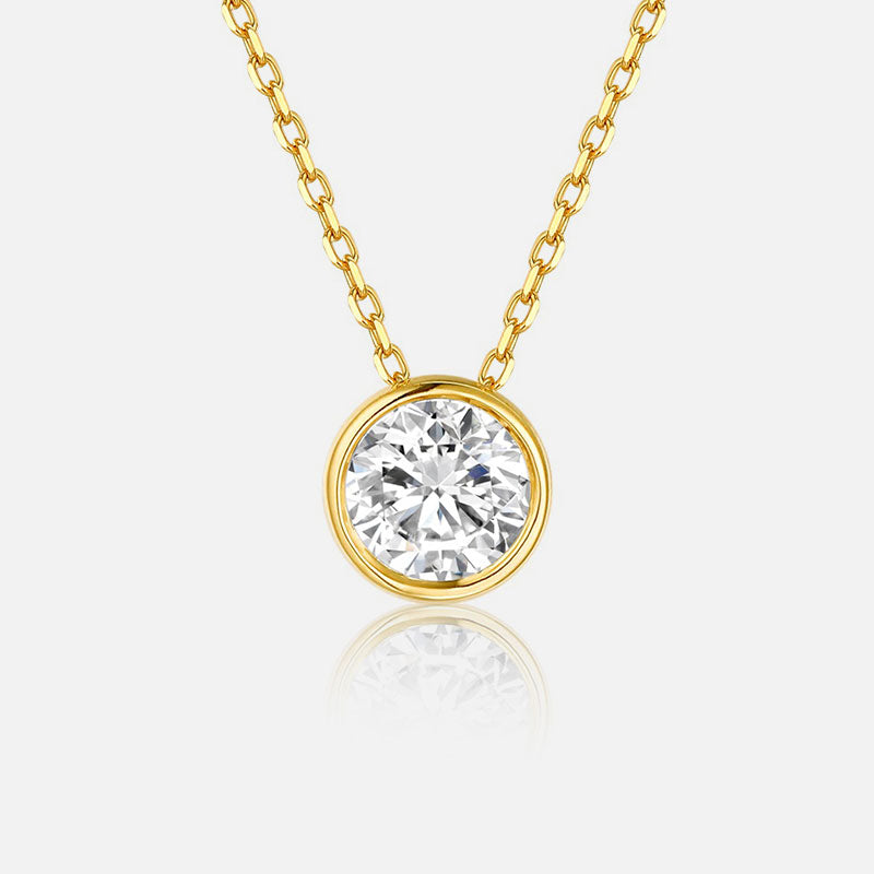 Collar de oro amarillo de 18 quilates con diamantes redondos engastados en bisel Collar personalizado con diamantes cultivados en laboratorio (1,535 CTW - DE/VS-VVS)
