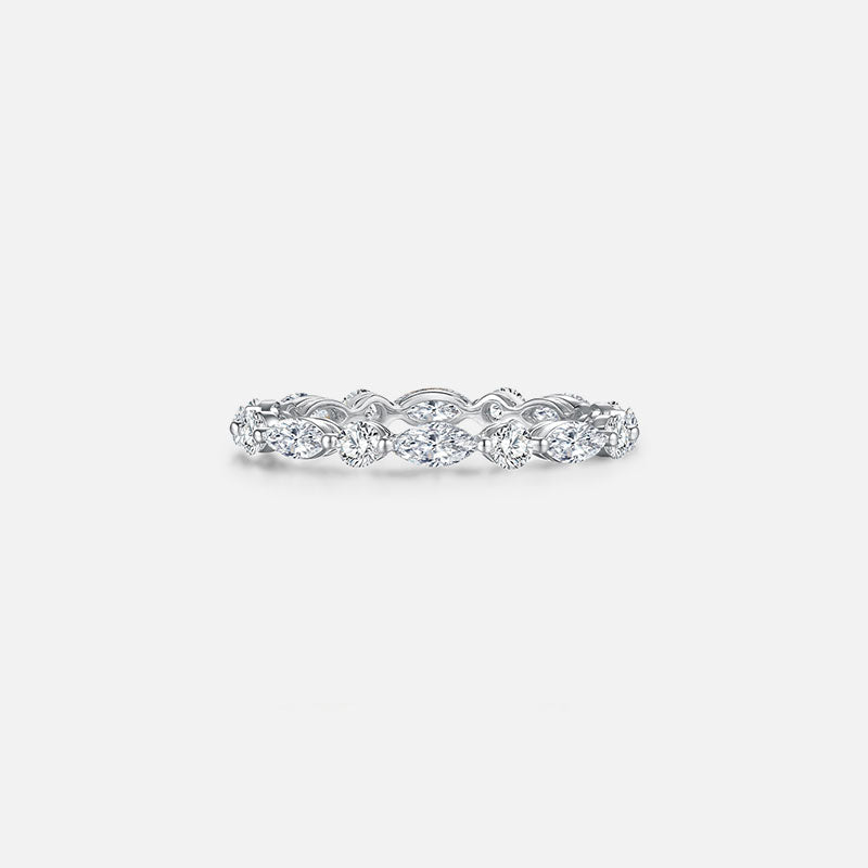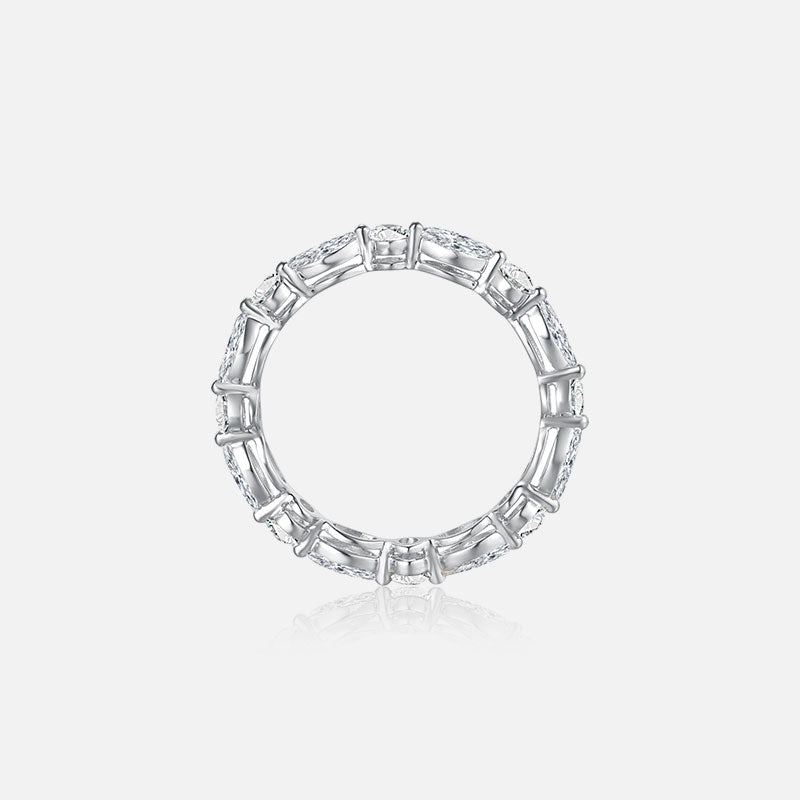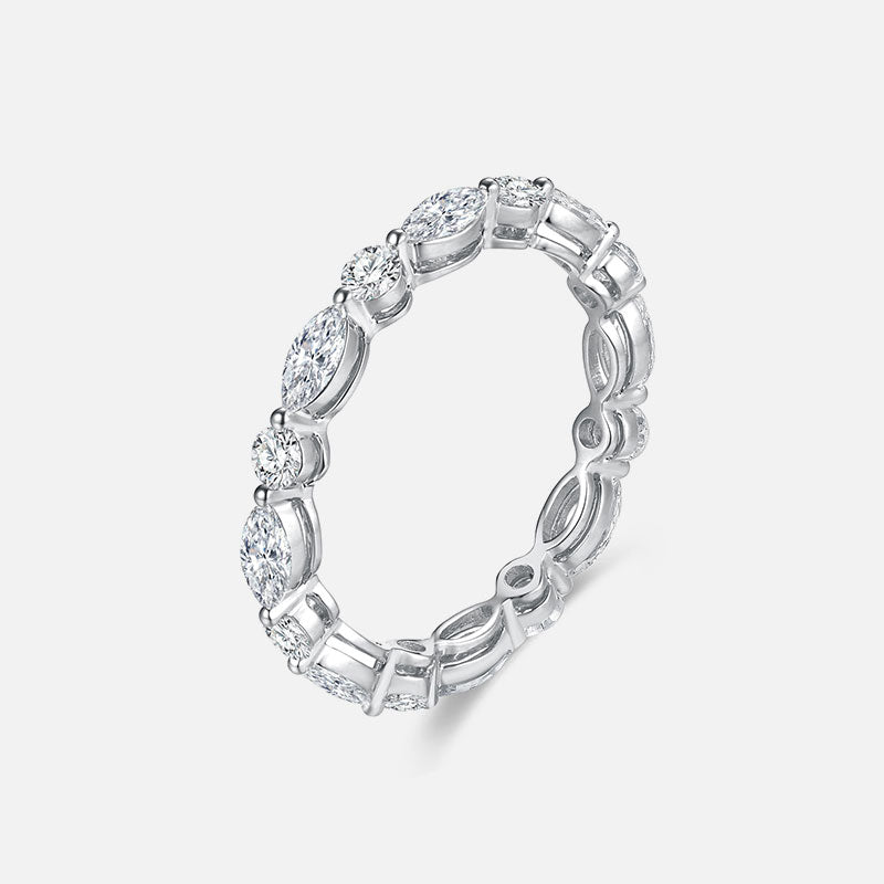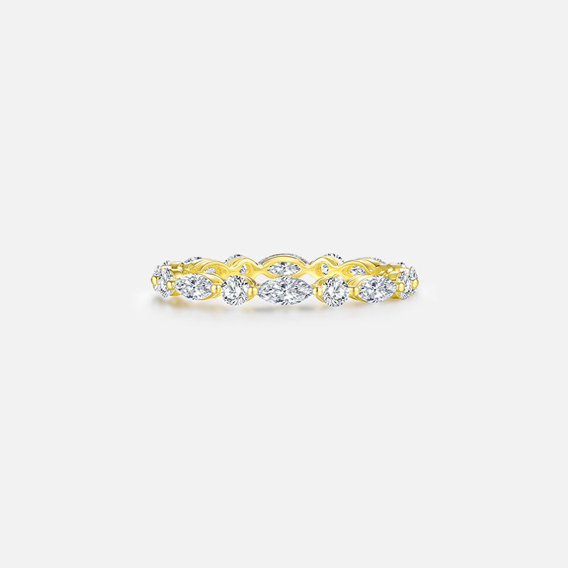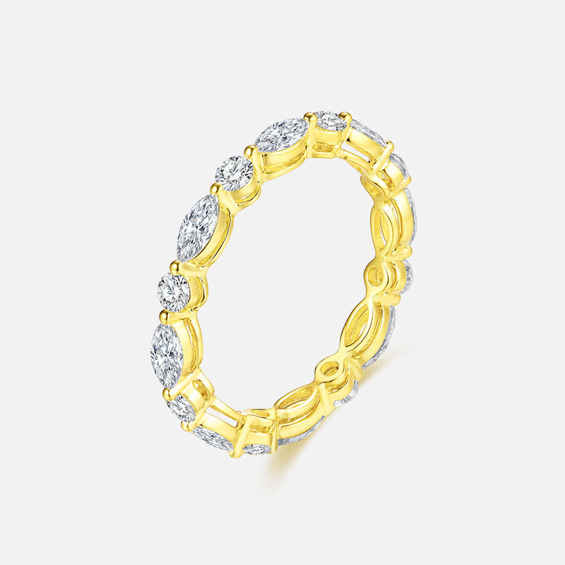 Anillo de bodas de oro amarillo de 18 quilates con diamantes redondos y marquesinas alternados Anillos personalizados con diamantes cultivados en laboratorio (1,70 CTW - DE/VS-VVS)