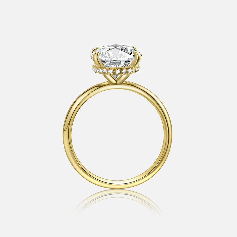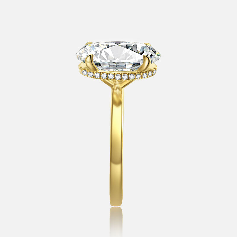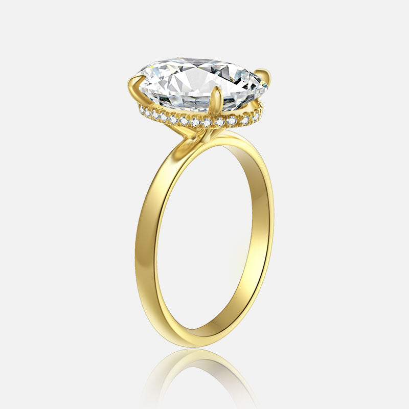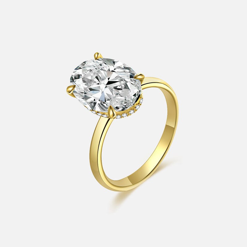 Anillo de compromiso ovalado de oro amarillo de 18 quilates con diamantes cultivados en laboratorio Anillos de compromiso personalizados (6,08 CTW-DF/VS-VVS)