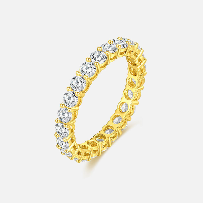 Anillo de bodas de oro amarillo de 18 quilates con pavé de diamantes redondos Anillos personalizados con diamantes cultivados en laboratorio (2,83 CTW-DF/VS-VVS)