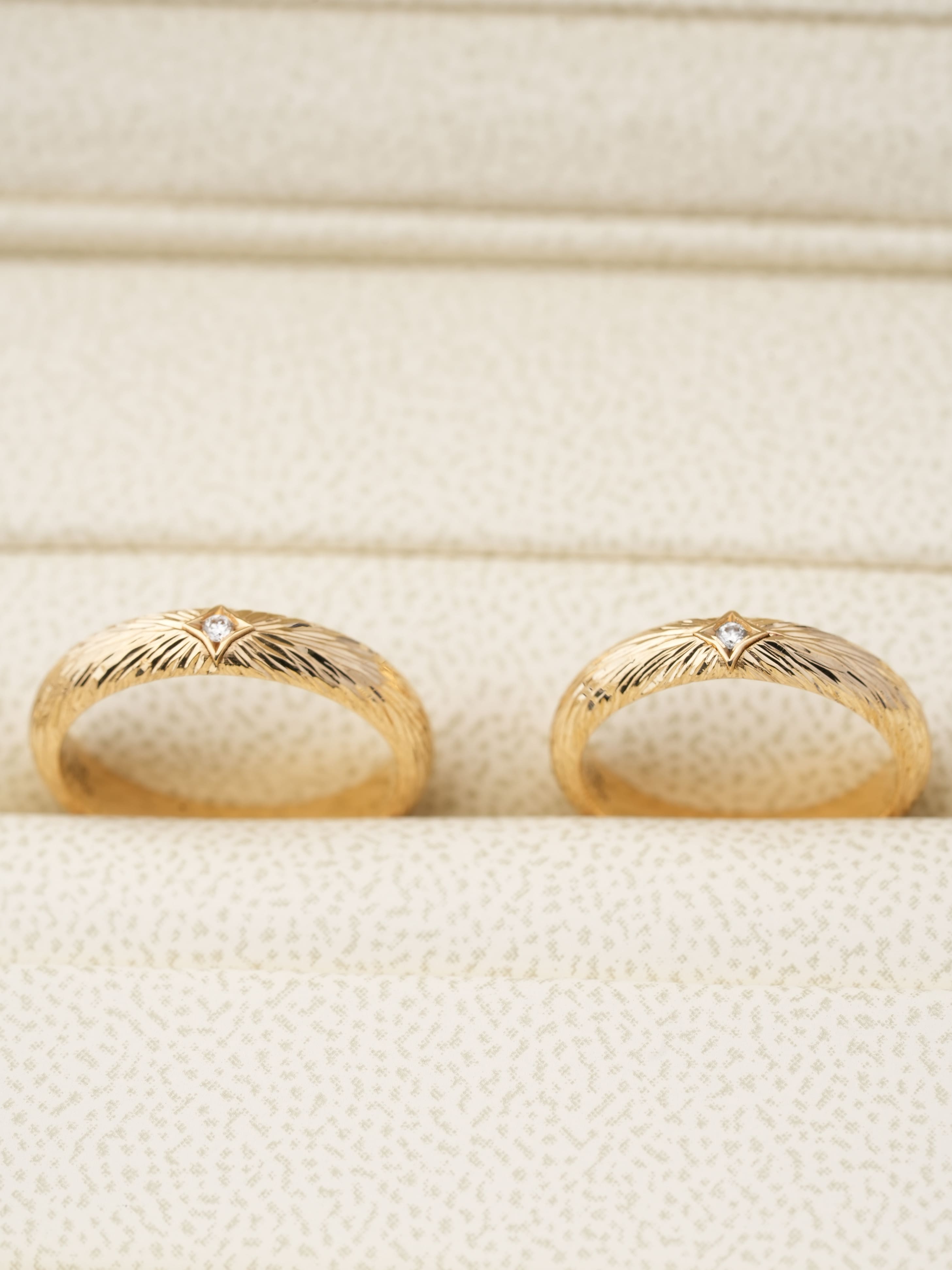 Anillo de bodas de diamantes en oro de 18 quilates con fuegos artificiales, anillo completamente personalizado