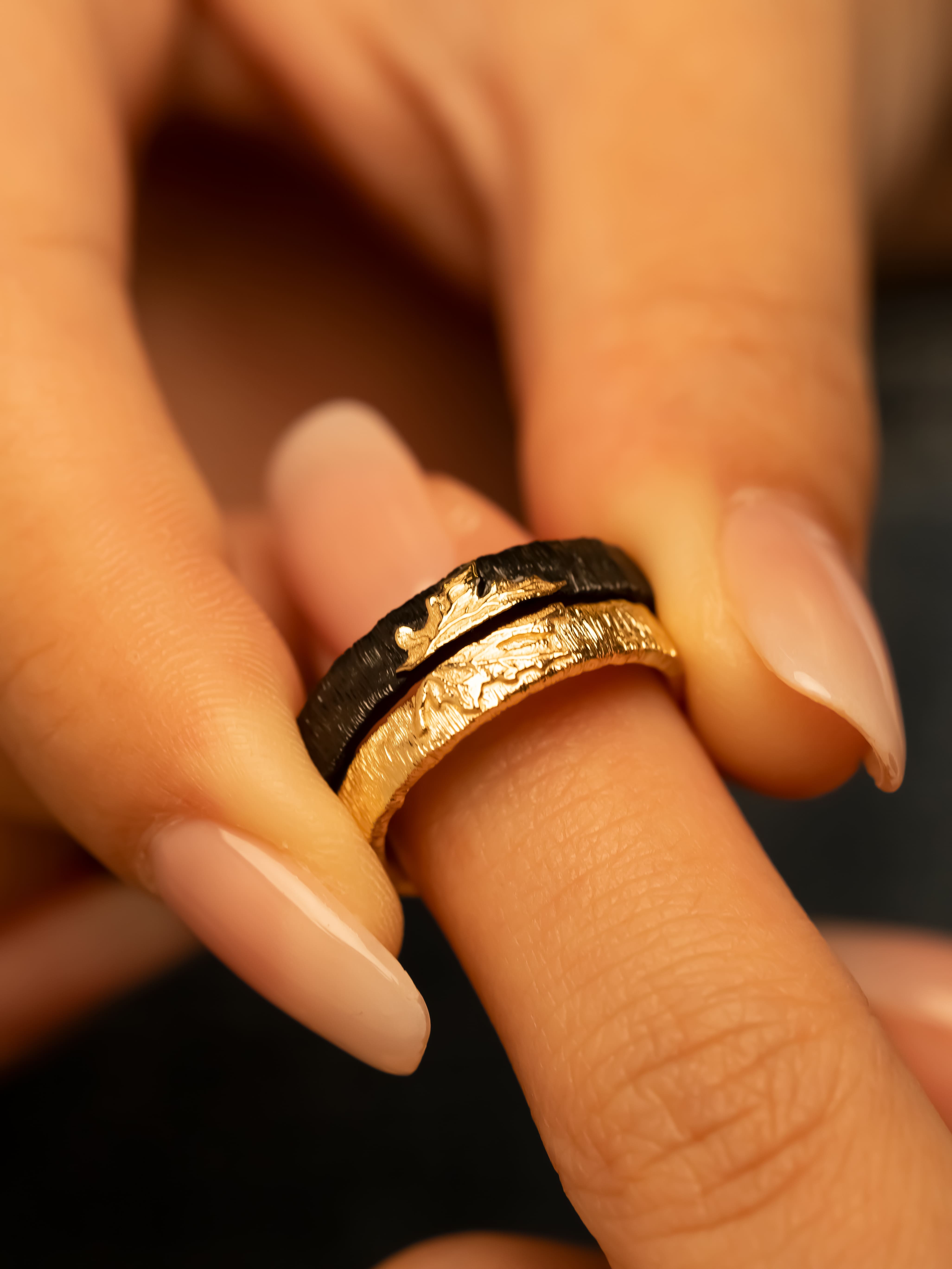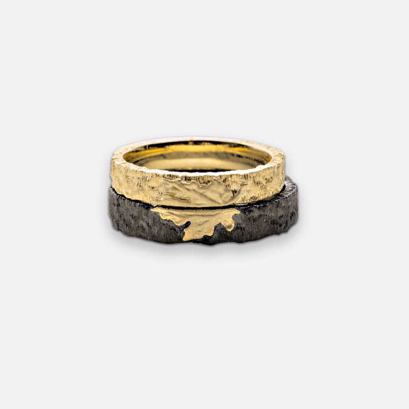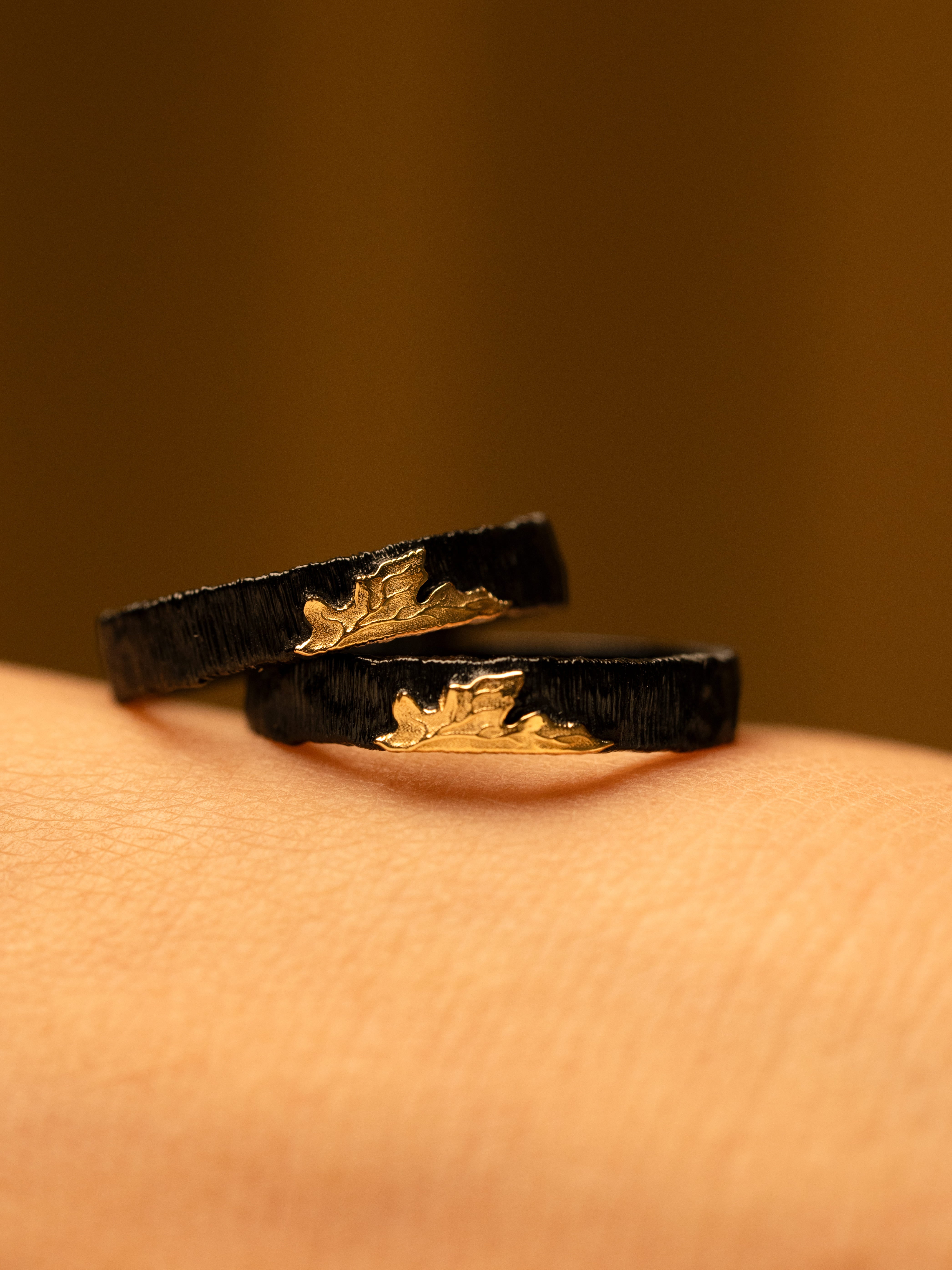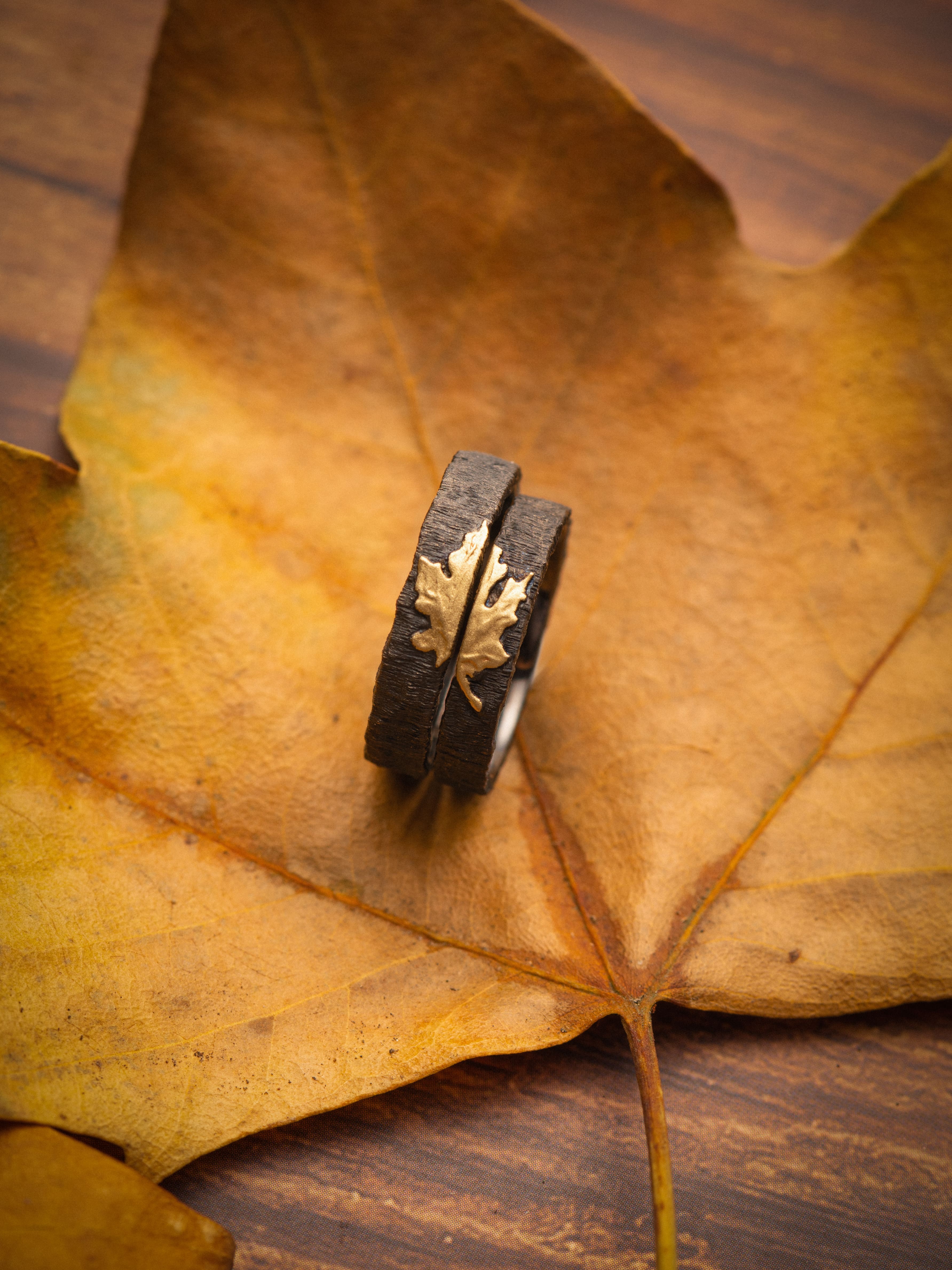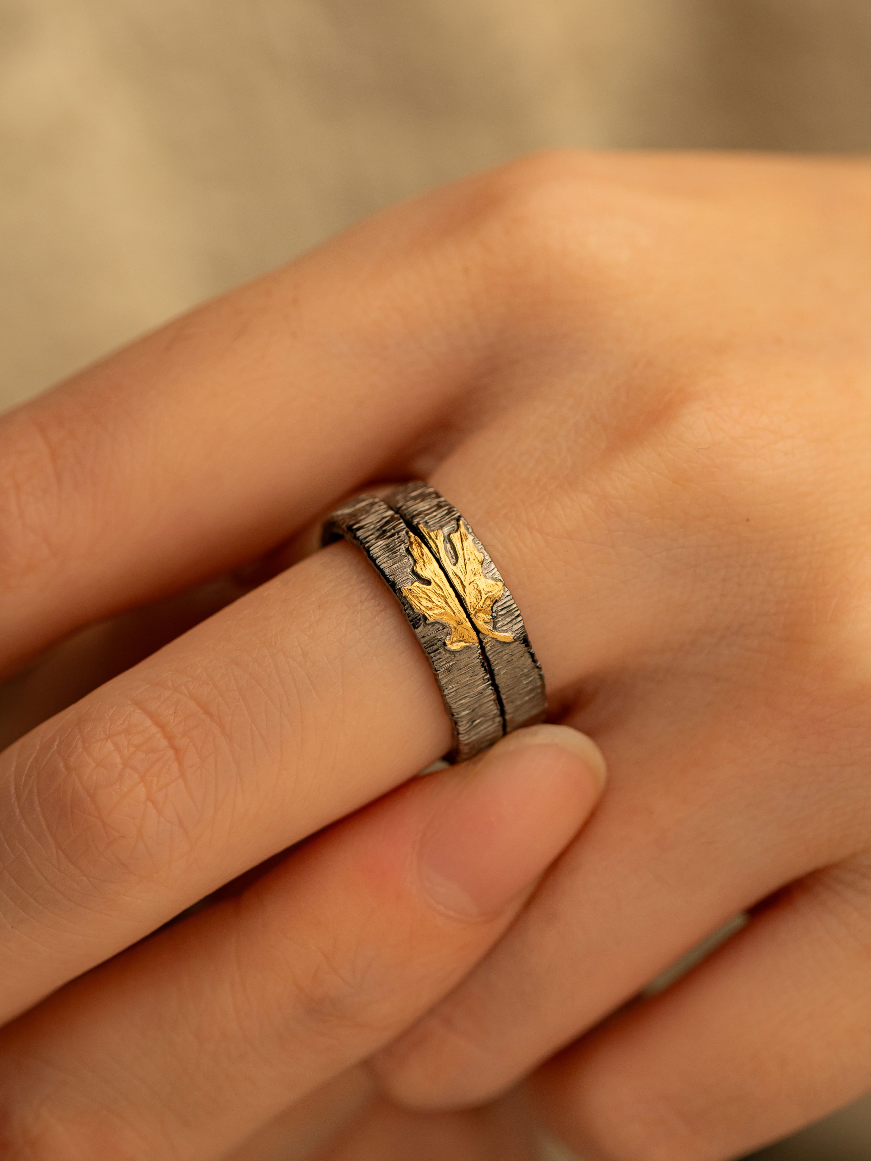 Anillo de bodas de oro de 18 quilates con arce Anillos completamente personalizados (anillo individual)