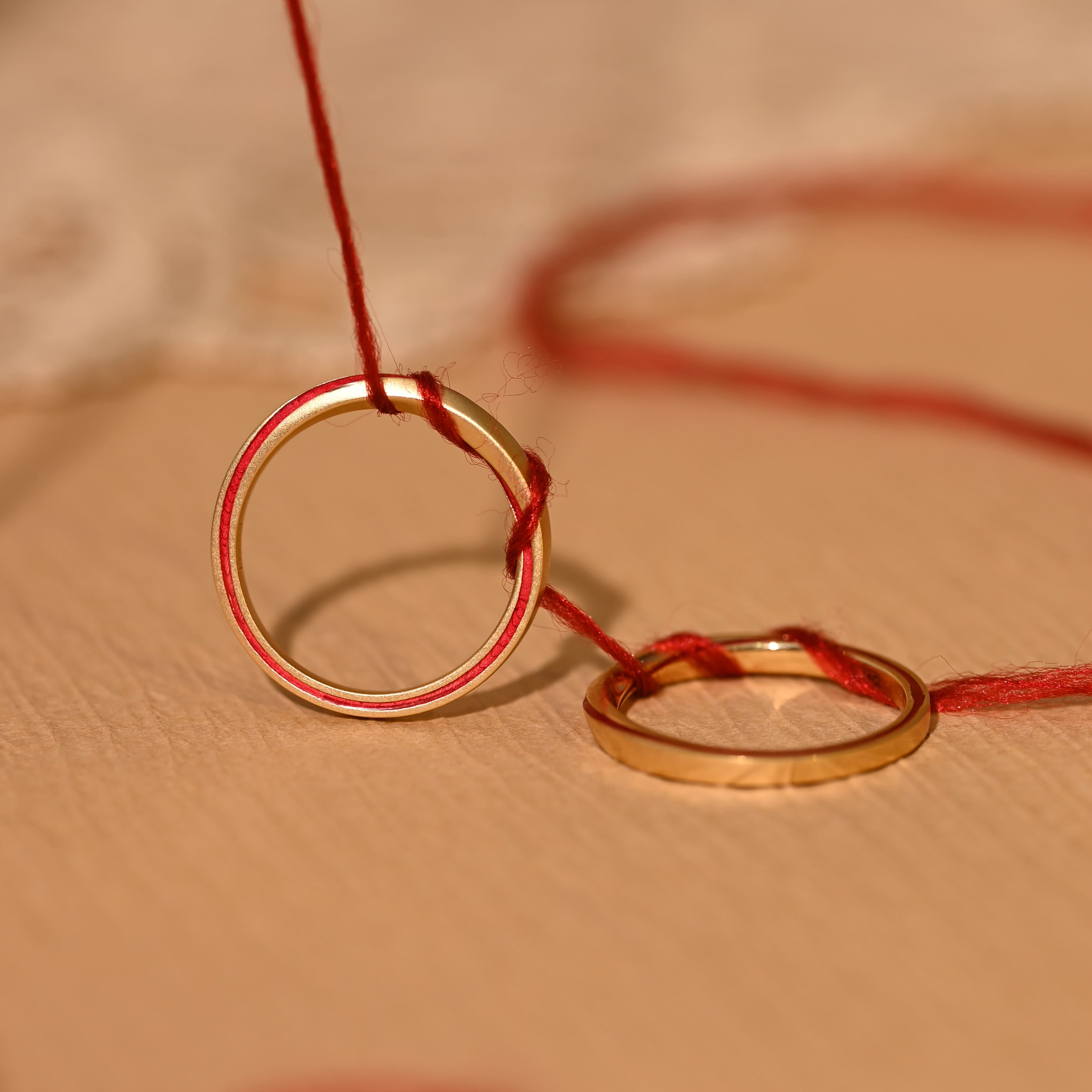 Anillo de bodas de oro de 18 quilates con hilo rojo de Matchmaker Anillo completamente personalizado