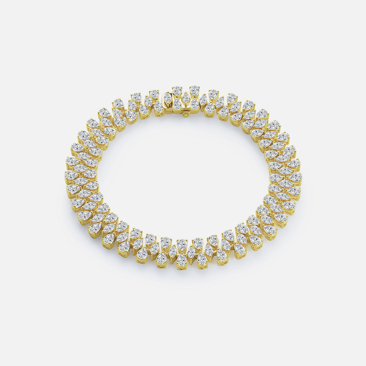 Bracelet en or jaune 18 carats avec diamants de formes mixtes Bracelet personnalisé avec diamants cultivés en laboratoire (3,21 CTW - DE/VS-VVS)