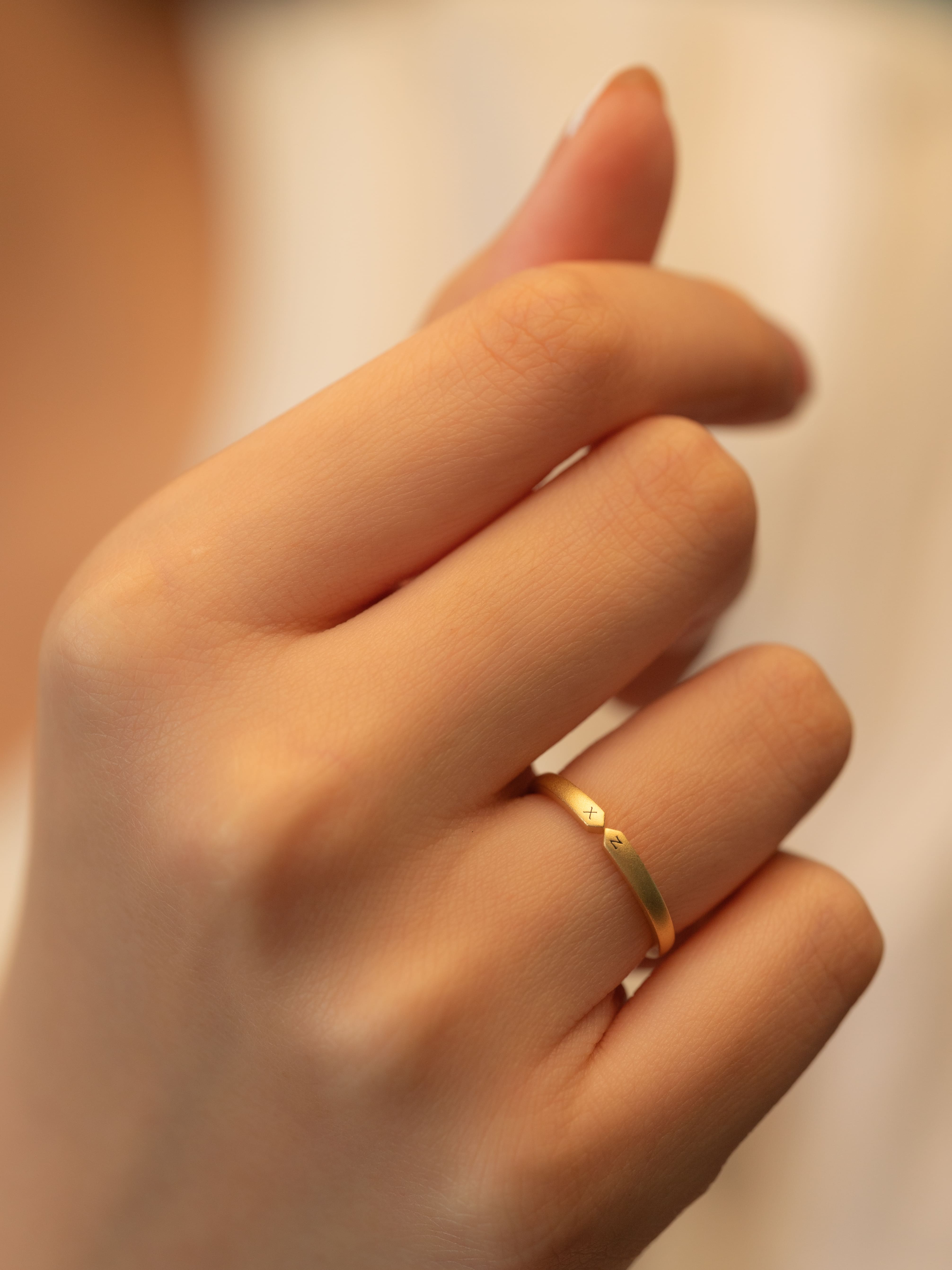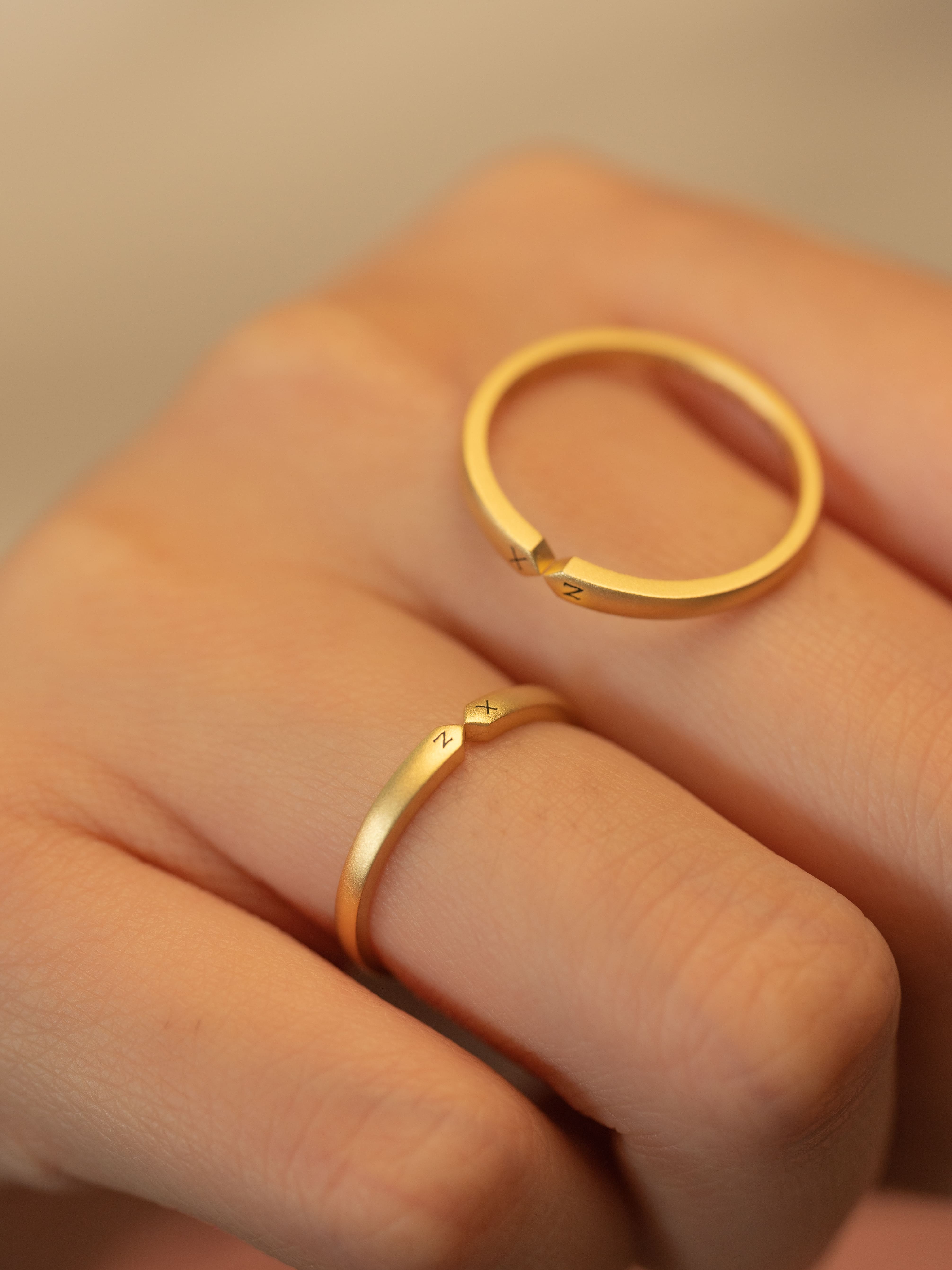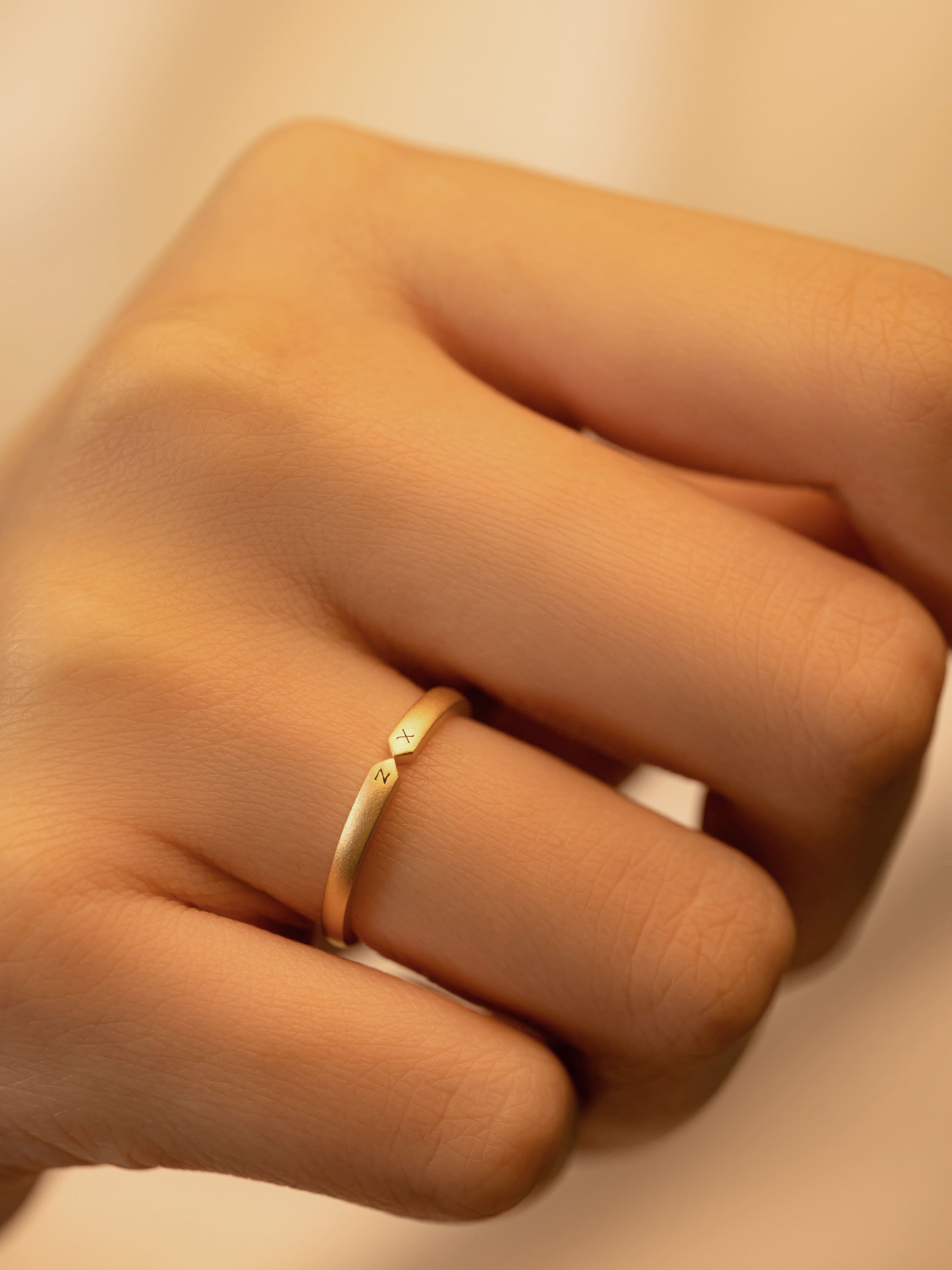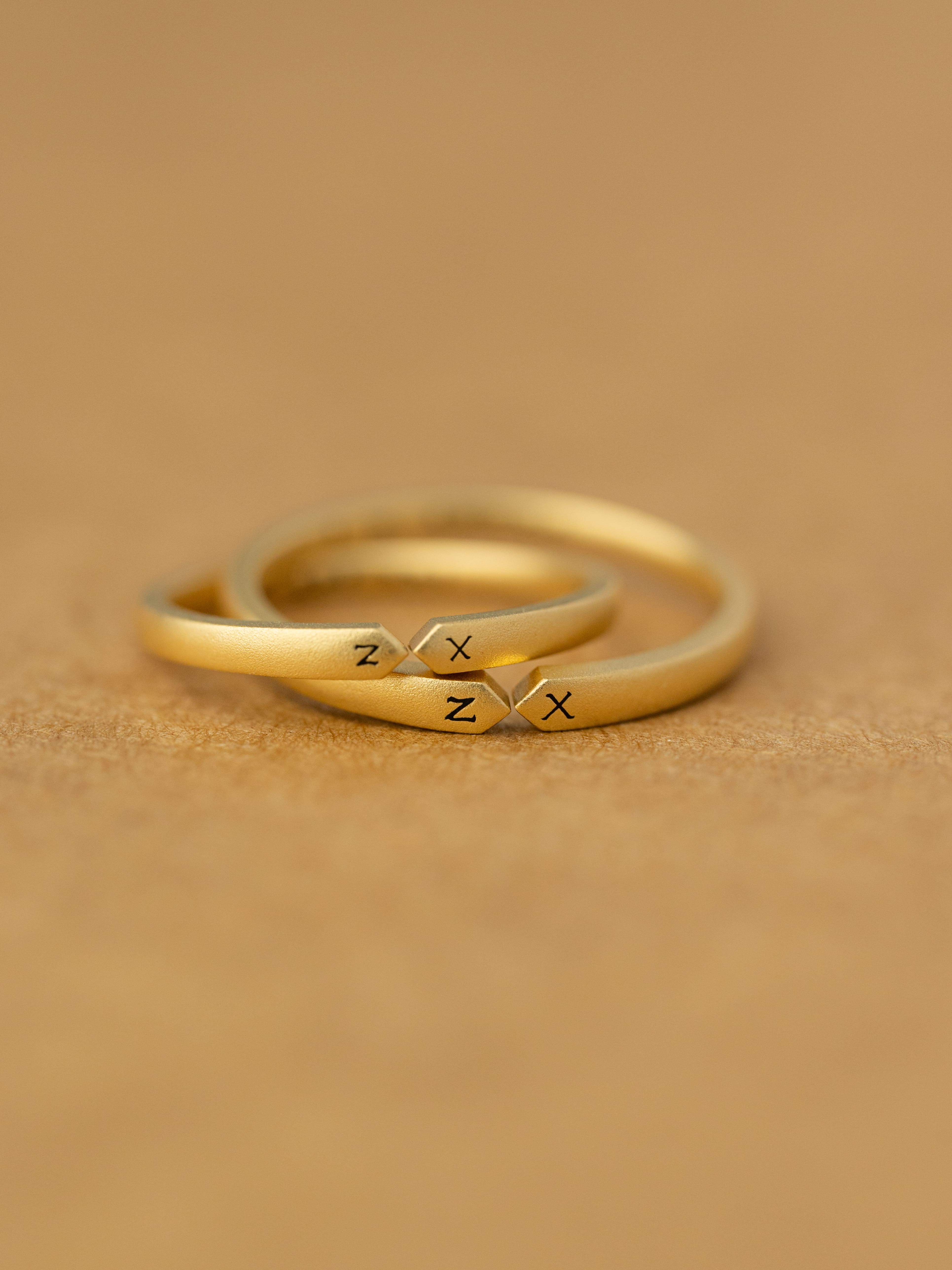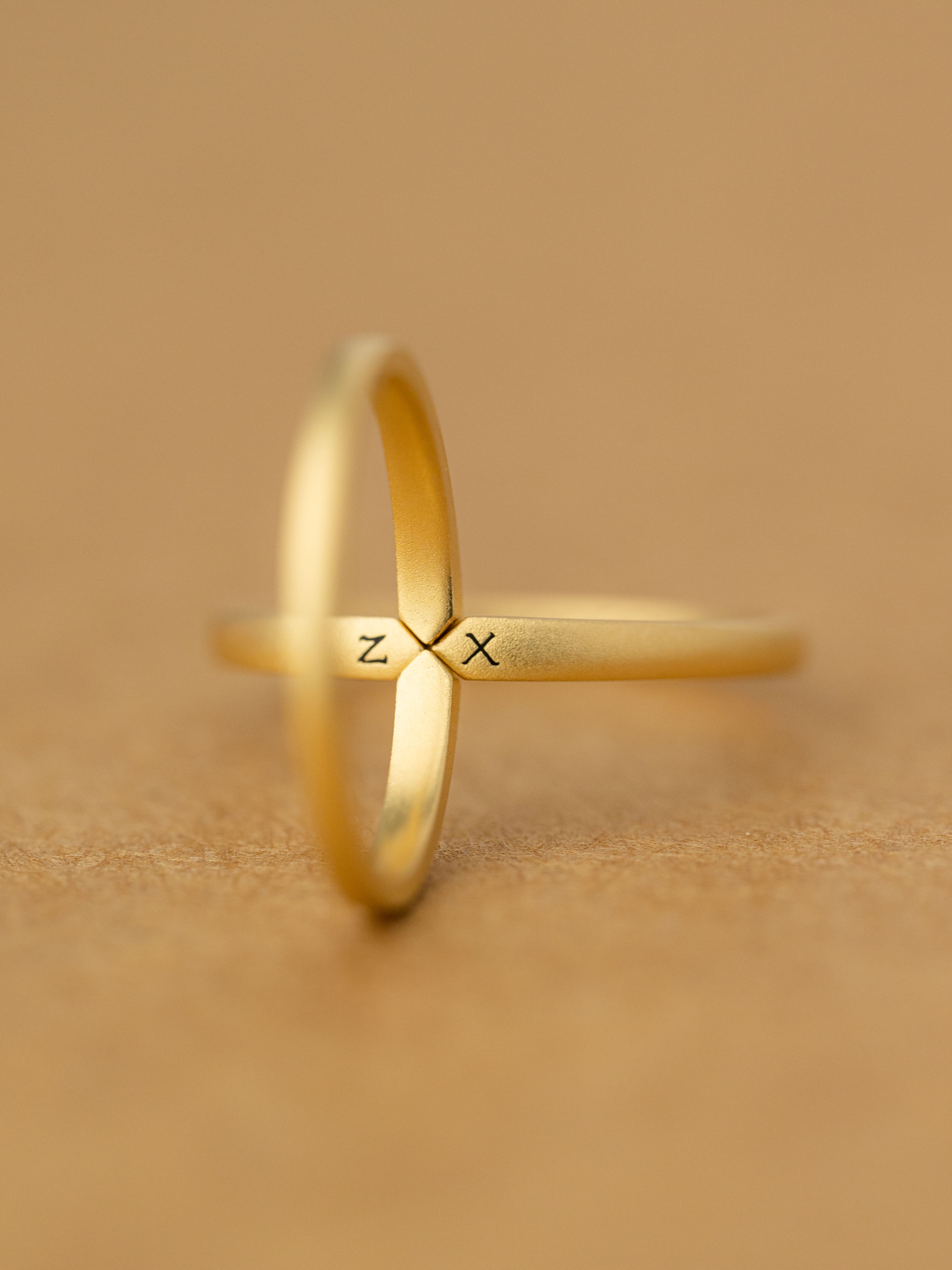 Alliance en or 18 carats L'union de deux noms de famille Bague de mariage entièrement personnalisée