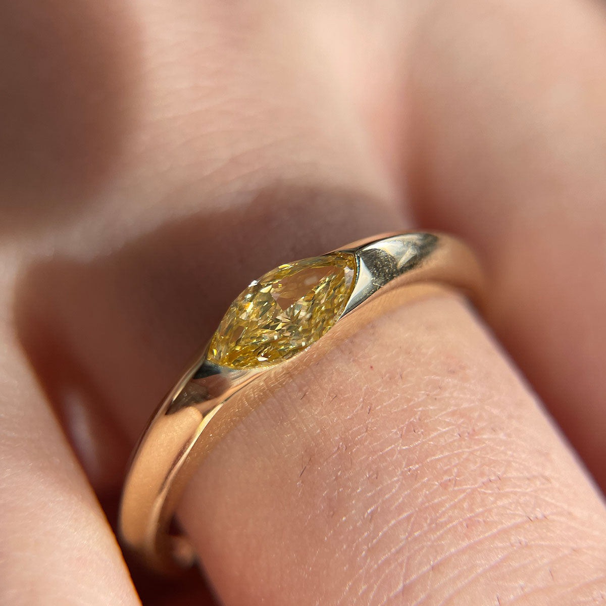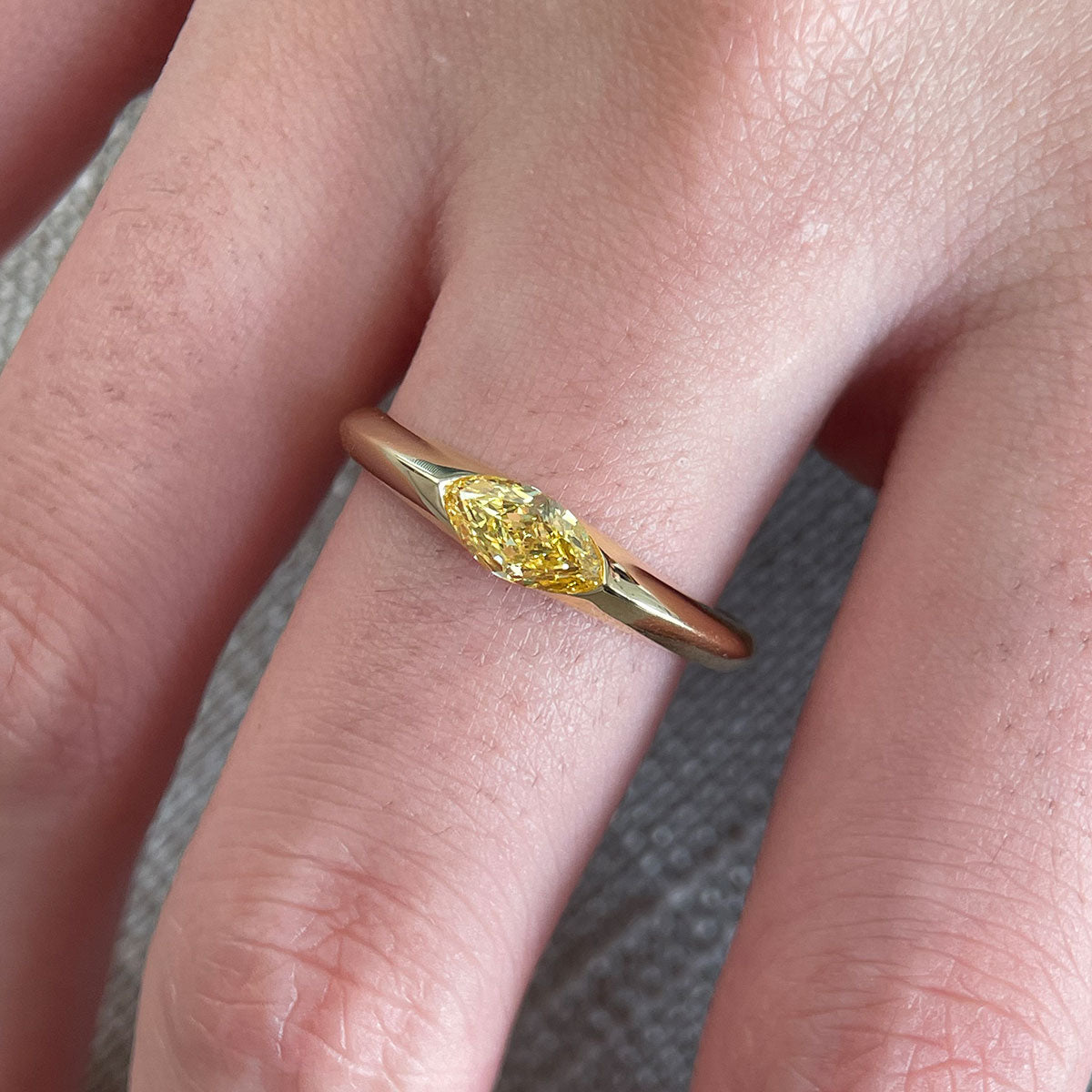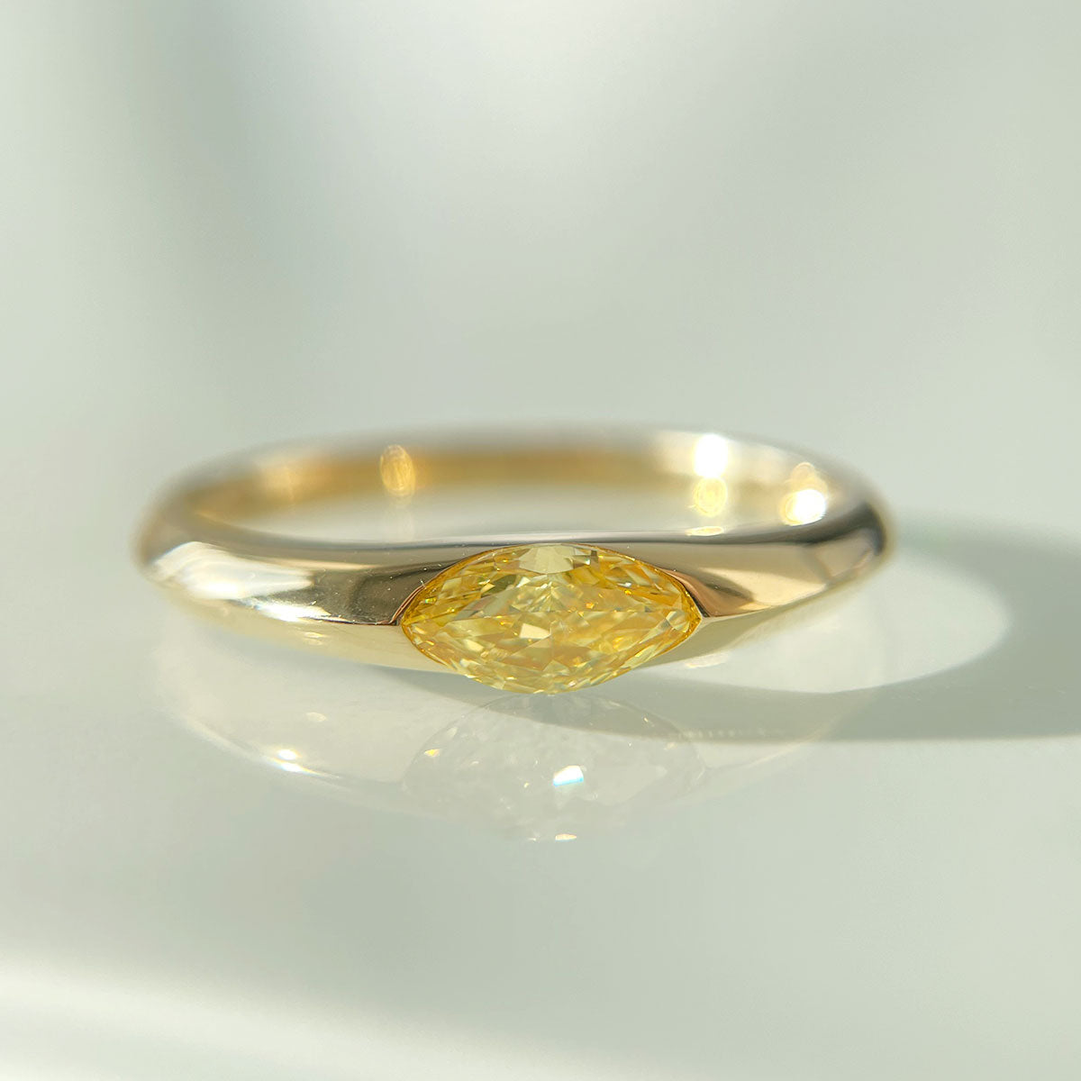 18K Yellow Gold Marquise Yellow Diamond Engagement Ring Lab-Grown Diamond Custom Ring (0.50CTW-FY-FIY-FVY/VS-VVS)